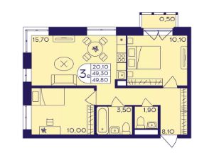 Продаётся 3-комнатная квартира в формате евро 49.80 кв. м. в жилом комплексе "Героев" в Балашихе, Железнодорожный. Квартира расположена на 17 этаже 611 корпуса.