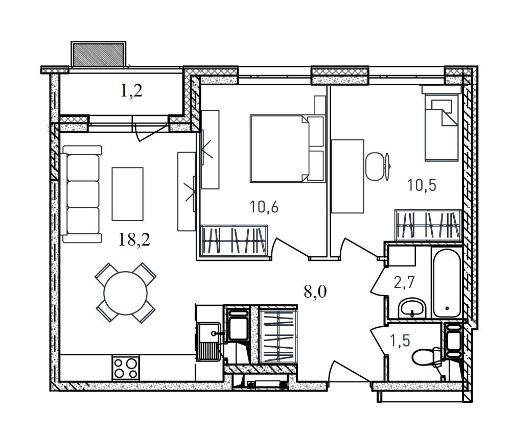 Общая площадь52,7 м²