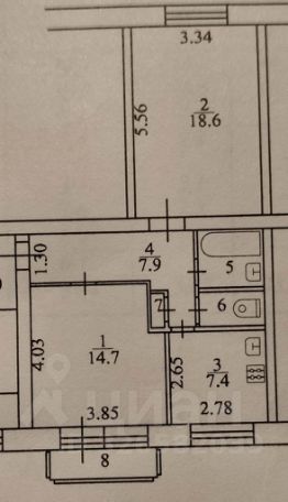 53,8 м²