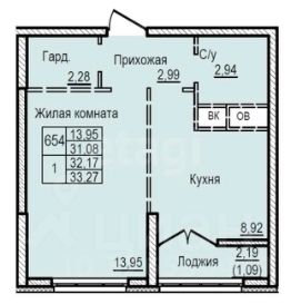 Общая площадь квартиры составляет 33 кв. м, из них жилая — 14 кв. м, а кухня — 8 кв. м. Квартира находится на 6 этаже 12-этажного дома, построенного в 2025 году из монолитно-кирпичных материалов.
