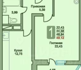 Продается однокомнатная квартира с отличным ремонтом в современном доме. Общая площадь квартиры составляет 49,12 кв. м, жилая — 22,43 кв. м, а просторная кухня занимает 12,75 кв. м. Квартира расположена на 18 этаже 28-этажного панельного дома, построенного в 2014 году. Высота потолков — 2,7 метра, из окон открывается вид на спокойный двор.