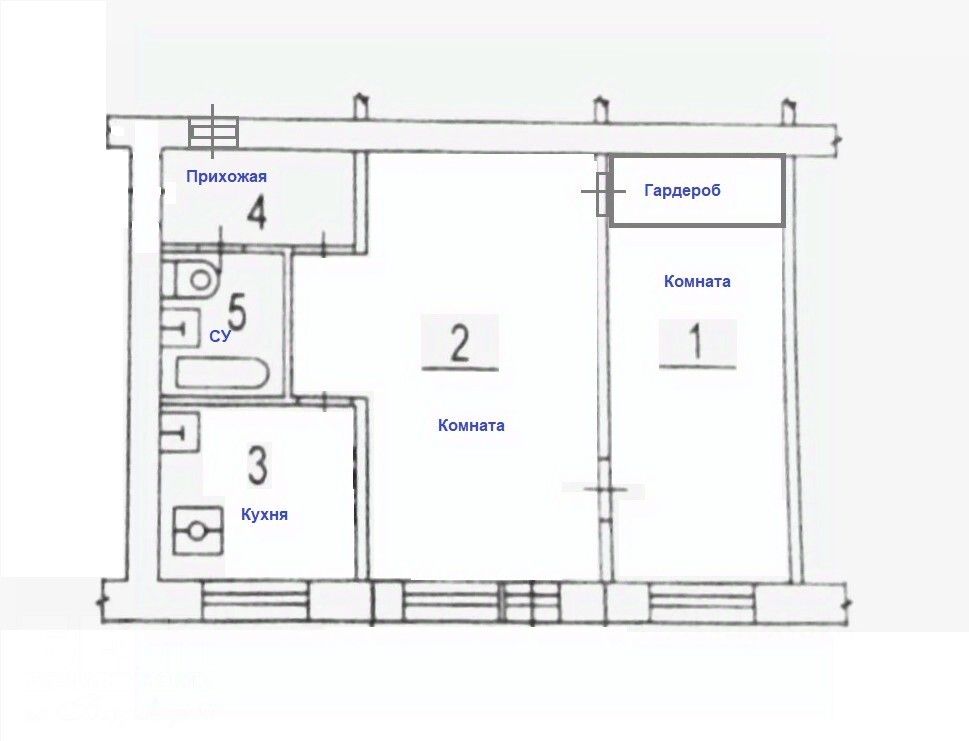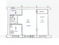 Общая площадь 44,5 кв. м., без балкона. Две комнаты смежные 19 + 11 кв. м. Кухня 5,5 кв. м. Санузел совместный. Перекрытия железобетонные. Центральное газоснабжение. Квартира не угловая. Дом окружен двором. Тихое место для постоянного проживания.