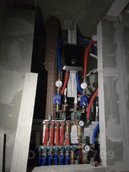 - электрика (розетки, освещение, интернет) трасса проведена по полу, на отдельных автоматах: комната и кухня + стиралка, посудомойка, холодильник и др. бытовая техника;