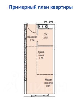 Площадь: общая ~ 19.3 м², жилая ~ 9 м², кухня-ниша ~ 5 м².