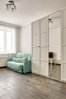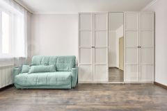 Светлая комната 17 кв.м., мебель остается новому собственнику. Преимуществом нашего предложения также является отдельная гардеробная комната, где вы легко разместите все свои вещи в идеальном порядке.