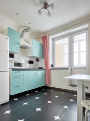 Просторная кухня, укомплектованная всем необходимым для комфортного проживания, с выходом на широкий и застекленный балкон, который станет любимым местом для утреннего кофе или созерцания заката на свежем воздухе.