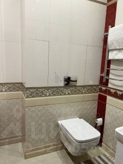 Ванная комната оформлена коллекционной плиткой Kerama Marazzi; установлена сантехника от ведущих брендов (Roca, Teka,Hansgrohe).