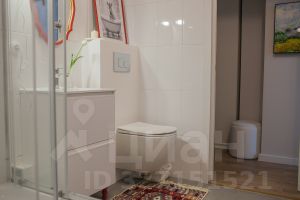 Просторный санузел, установлена инсталляция и тумба.