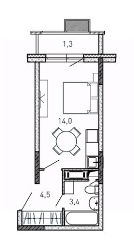 Студия, 23,2 м²