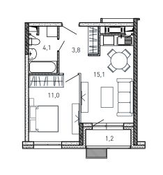 1-комн. квартира, 35,2 м²