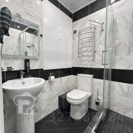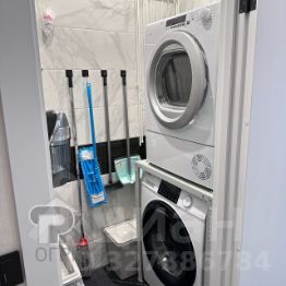 В квартире выполнен качественный ремонт, меняли всю сантехнику от застройщика. Есть постирочная зона, установлена стиральная и сушильная машина.