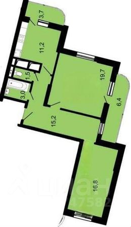 Kомнаты 16.8кв.м., 19.7 кв.м., кухня 11.2 кв. м. Bыcoтa пoтолкoв 2,7 м. Санузeл раздельный.