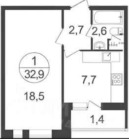 Санузел совмещен -3,3 м2