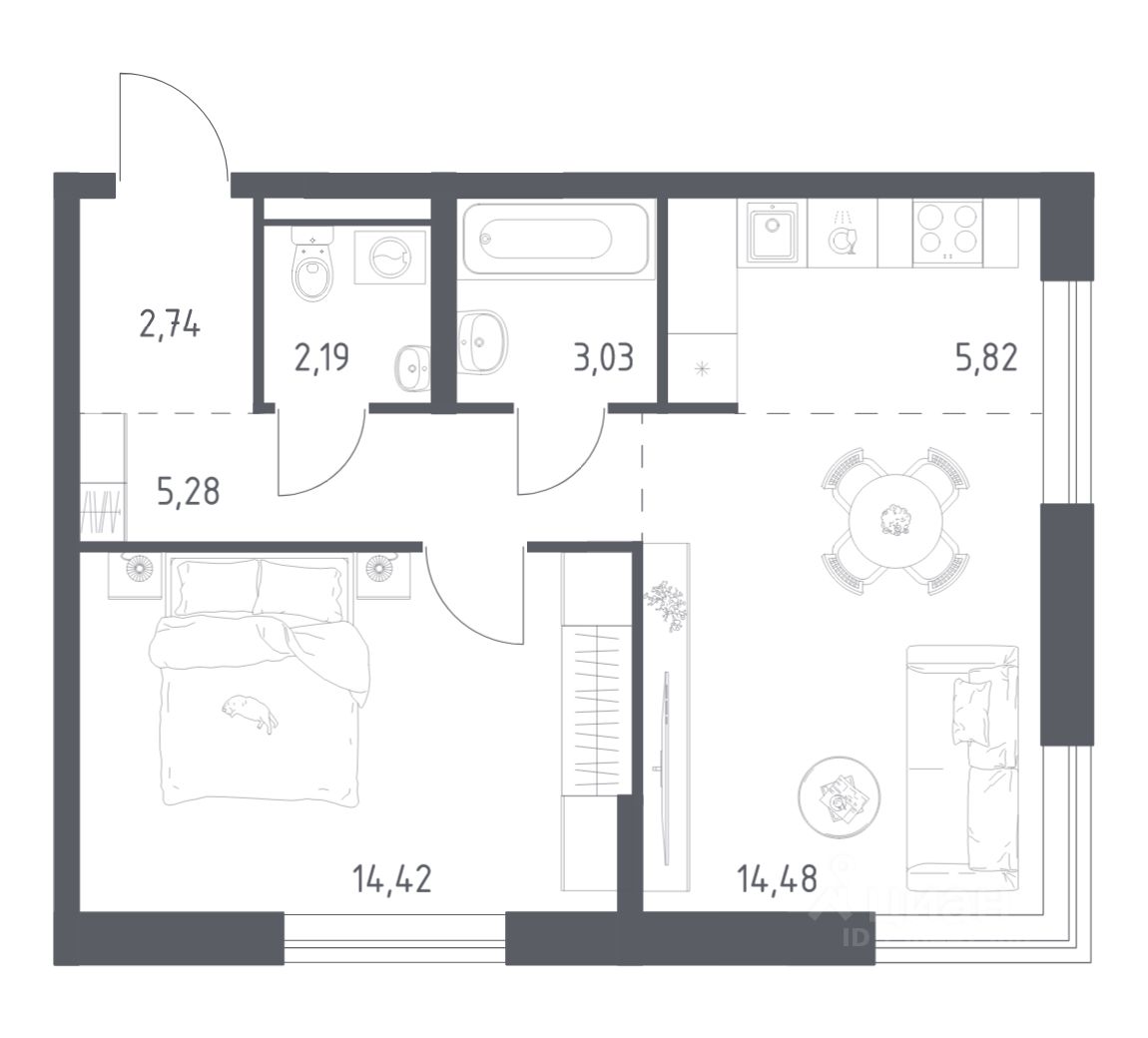Строим кварталы для жизни с заботой о будущем. Предлагается 1-комнатная квартира комфорт-класса площадью 47,96 кв.м в корпусе 4 на 2-м этаже, в жилом комплексе "Квартал Авиаторов".