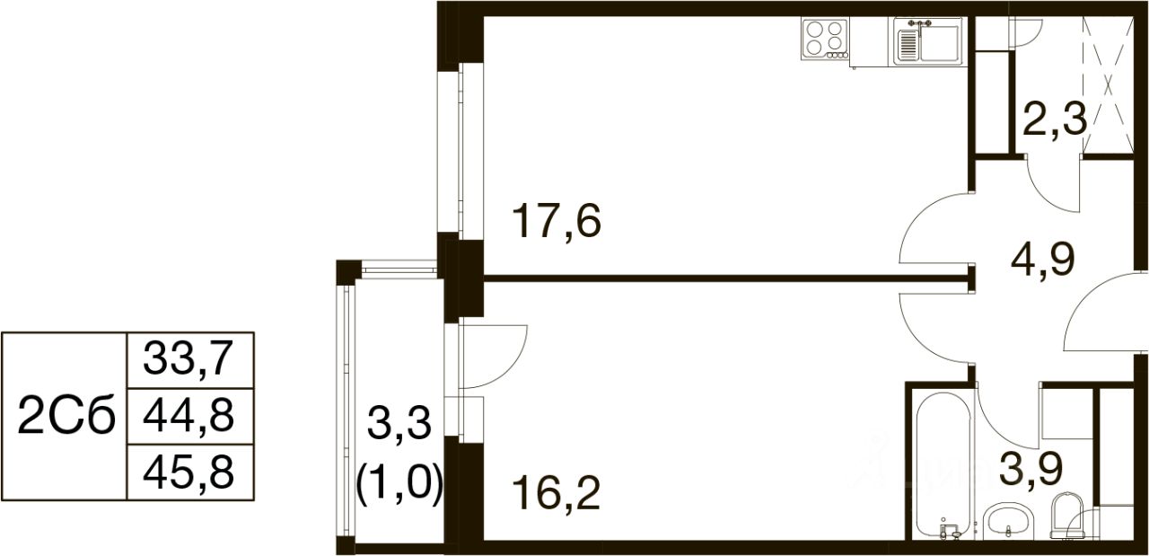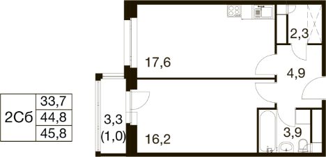 Общая площадь45,8 м²