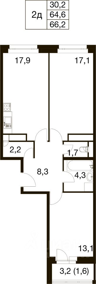 Общая площадь66,2 м²