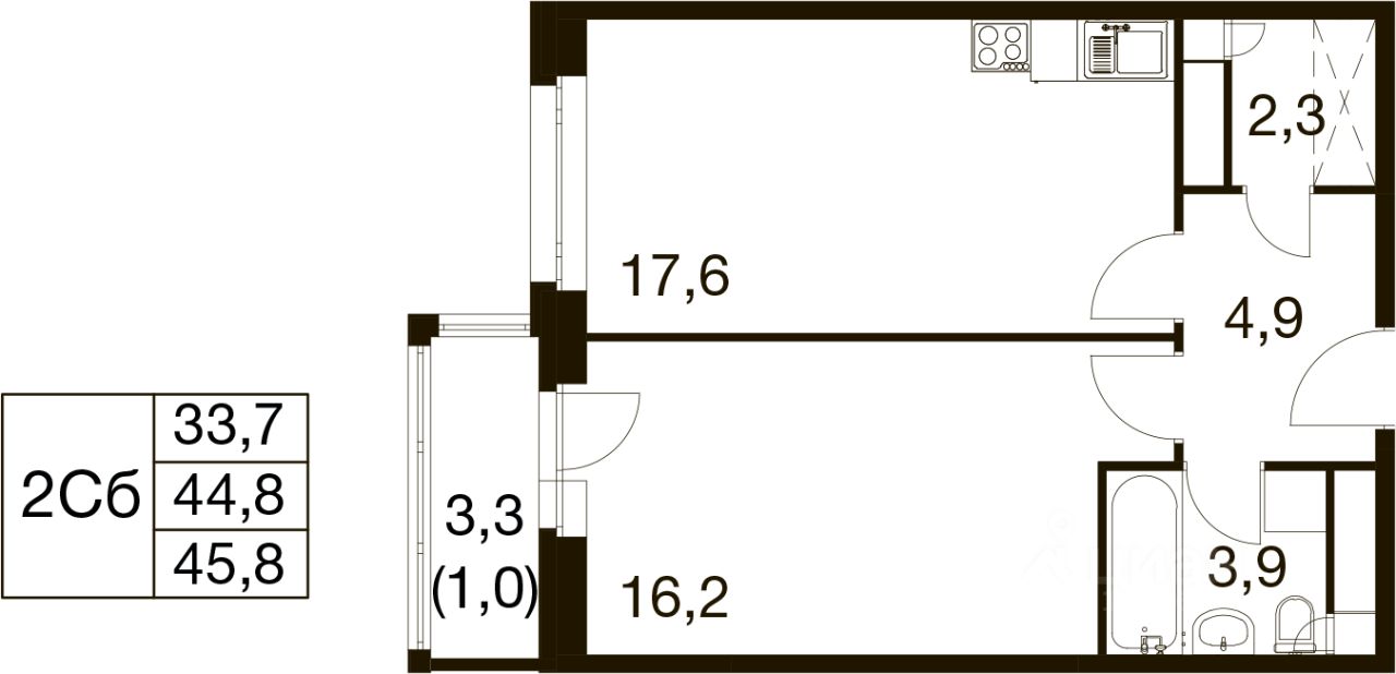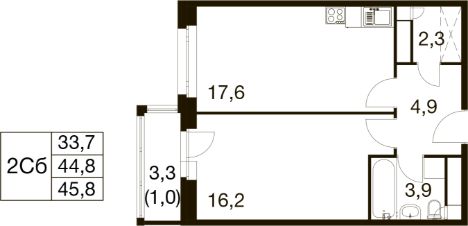 Общая площадь45,8 м²