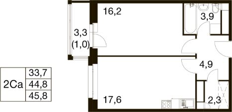 Общая площадь45,8 м²