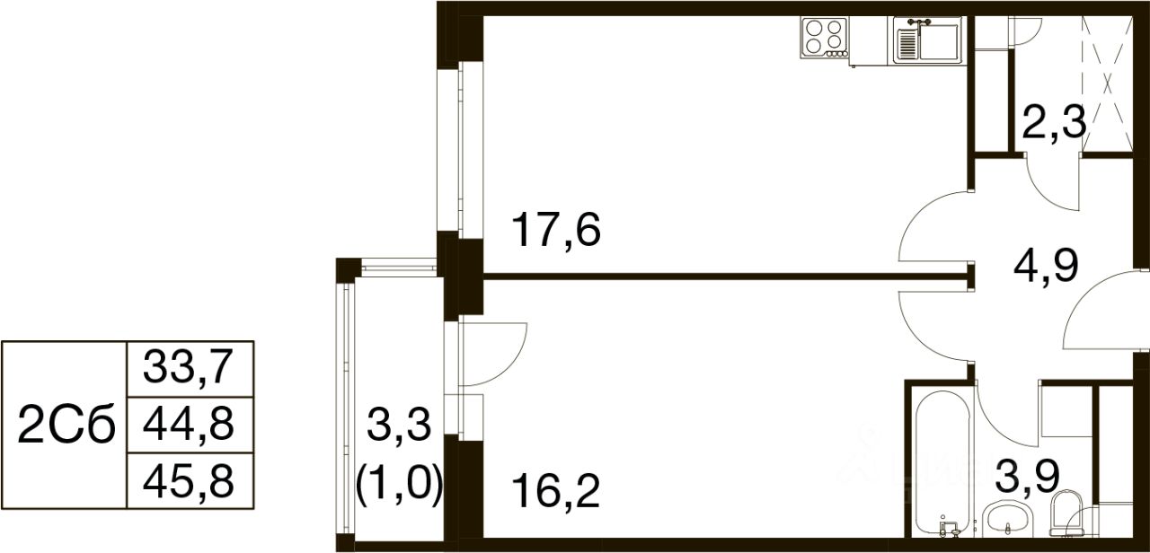 Общая площадь45,8 м²