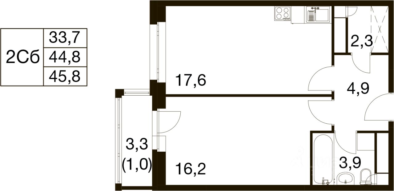 Общая площадь45,8 м²
