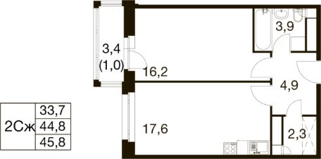 Общая площадь45,8 м²