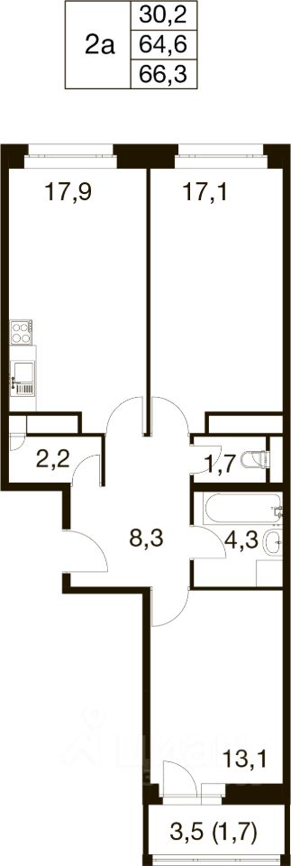 Общая площадь66,3 м²