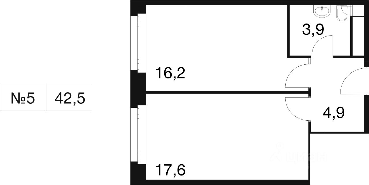 Общая площадь42,5 м²