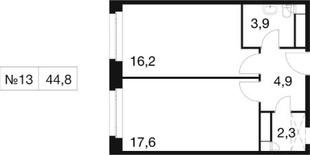 Общая площадь44,8 м²