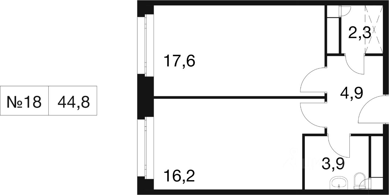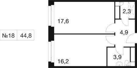 Общая площадь44,8 м²