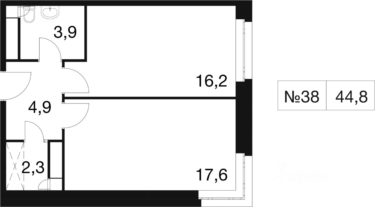 Общая площадь44,8 м²