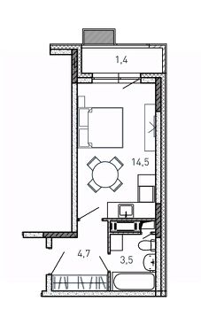 Студия, 24,1 м²