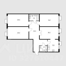 Жилая площадь 77 кв.м. , Кухня 10.5 , Прихожая 24.2 кв.м. , Санузлы 4.4 кв.м. , 2.9 кв.м.