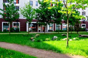Большой закрытый двор с выделенными детскими и спортивными площадками, зоны отдыха и ожидания, также для юных жителей работает школа и детский сад.