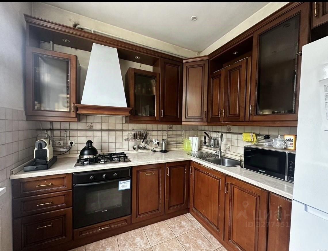 Кухня оборудована необходимой бытовой техникой, включая холодильник и стиральную машину. В ванной комнате совмещенный санузел. В коридоре установлены шкафы для хранения вещей.