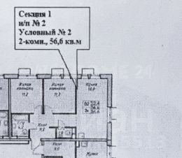 - Общая площадь: 56.6 м².