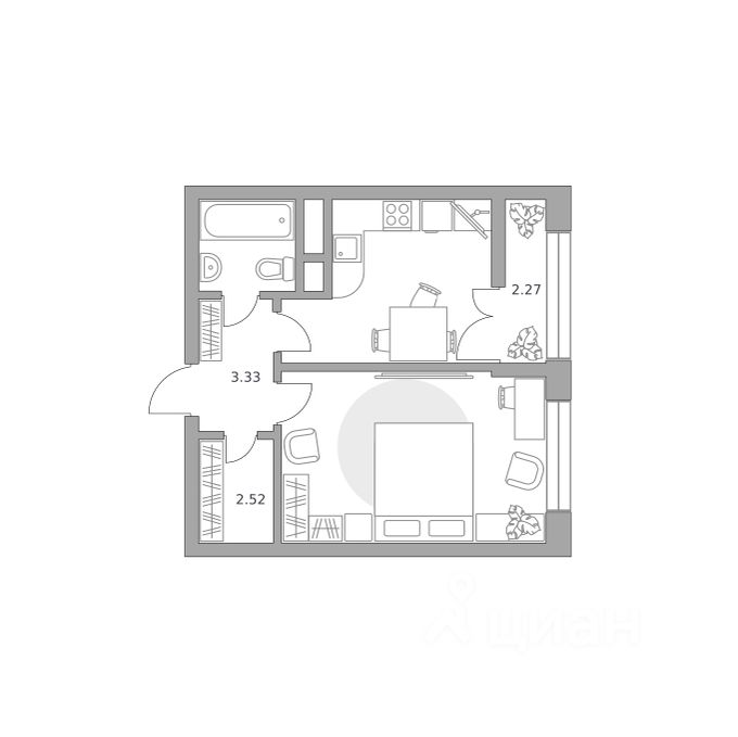 Продаётся 1-комнатная квартира 923, площадью 33,90 м², на 9 этаже в ЖК "Пехра" корпус 8. Стоимость — от 7068404 руб. Квартира white box, планировка односторонняя, окна во двор.
