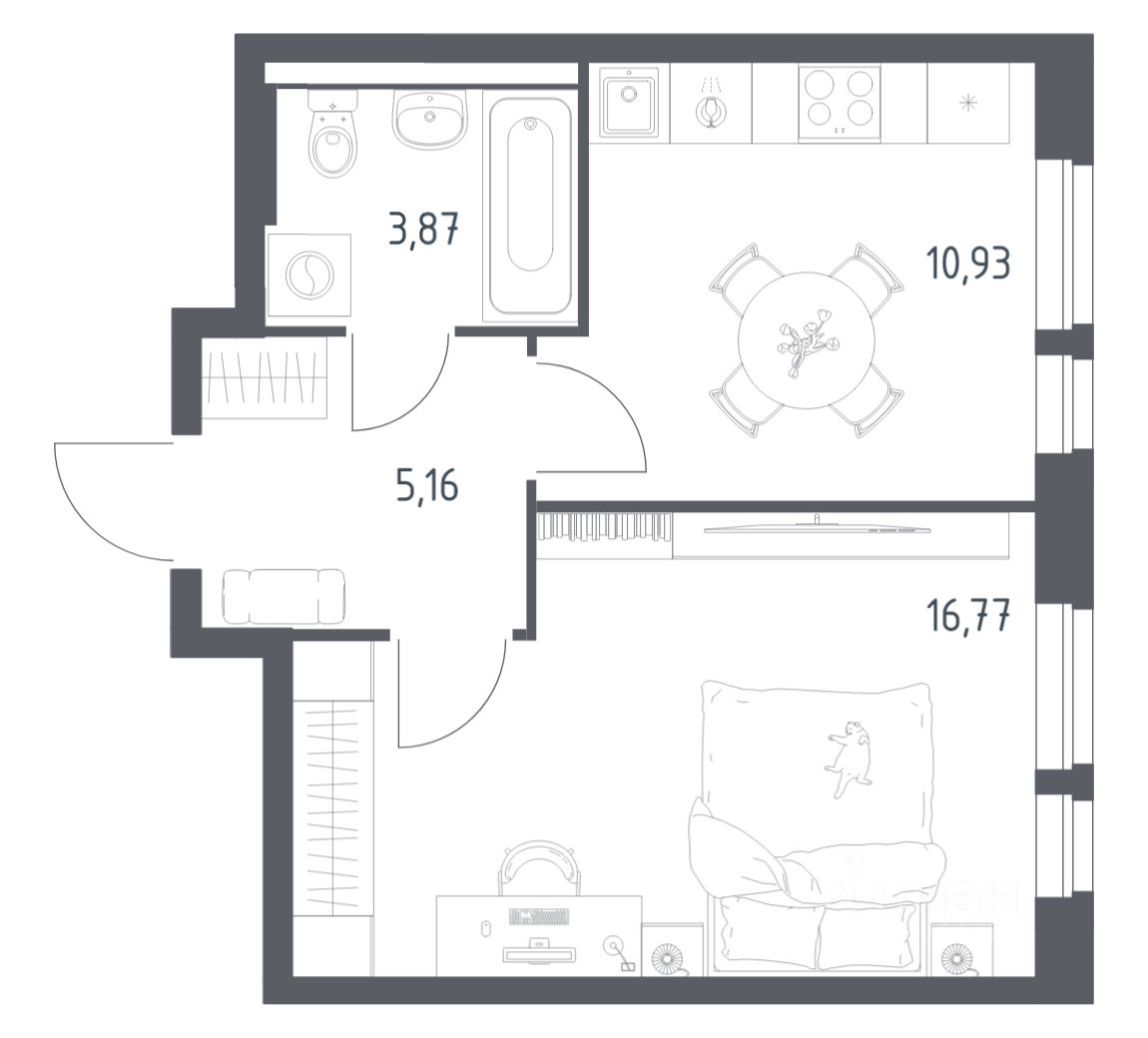 Квартиры комплекса — на выбор: могут быть как с отделкой, так и без. В случае с готовой отделкой в комнатах и прихожей уже будут обои, натяжные потолки и ламинат, а в санузлах — керамогранит на полу и керамическая плитка на стенах. Мы подведем все коммуникации и установим сантехнику.