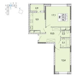 Продаётся 2-комнатная квартира в сданном доме (улица Поликахина, 2 (Корпус 305)), срок сдачи: III-кв. 2022, общей площадью 56.9 кв.м., на 8 этаже. Расположение в самом центре города обеспечивает доступ к богатой торговой, развлекательной, социальной инфраструктуре Железнодорожного. При этом собственная инфраструктура микрорайона сделает "Центр-2" не только географическим, но и общественным центром жизни города Железнодорожный. Территория микрорайона делится на две части широким благоустроенным бульваром. На первых этажах домов расположатся магазины, кафе, рестораны, точки сервисного обслуживания, салоны красоты.
