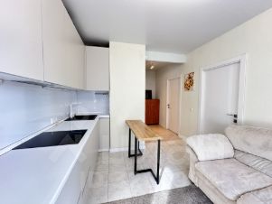 Кухня-гостинная 13.5 м. две изолированные комнаты, раздельный санузел с гигиеническим душем, остаются встроенная мебель и техника.