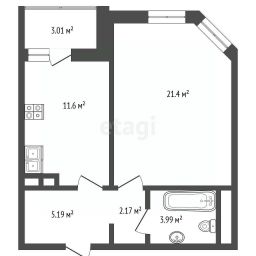 * 1 изолированная комната, 21 кв.м.