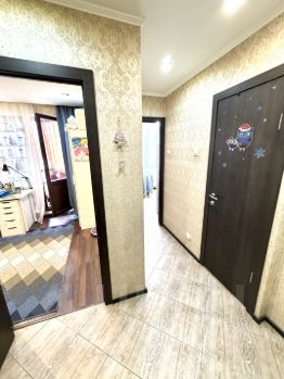 Спальная комната с угловой нишей, что позволяет сделать удобное зонирование. Идеальная большая лоджия, порядка 4 метров, которую при утеплении можно оборудовать, как кабинет или дополнительную зону отдыха. Лоджия в общую площадь не входит. Ремонт косметический, достаточный для того, чтобы спокойно заехать и жить. При этом если вы хотите сделать ремонт под себя- эта квартира также отличный вариант. ЖК Ольгино парк построен в 2016 году. Подъезд чистый, ухоженный, приятные семейные соседи. Закрытый тамбур от лифтовой зоны, что обеспечивает дополнительную безопасность и приватность.
