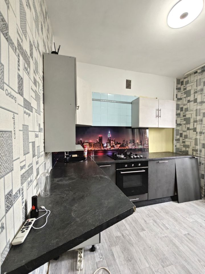 Общая площадь квартиры - 49,9 м2. Удобная планировка "распашонка", две изолированные комнаты, из кухни выход на небольшой незастекленный балкон. Раздельный СУ с ванной. Квартира в жилом состоянии, но ремонт желателен. В квартире установлены пластиковые окна, счетчики воды, телевидение и пр. Всё остается покупателю, вкл. технику и кухонный гарнитур. Все окна выходят во двор.