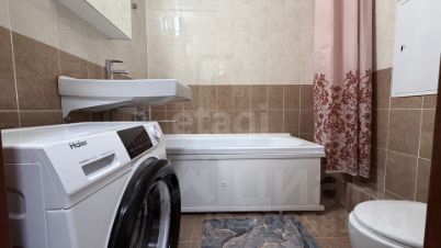 Кухонный гарнитур со встроенной техникой вытяжка, стиральная машина. Застеклённый балкон на всю ширину квартиры.