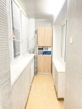 Лоджия застеклена и утеплена, что позволяет её использовать как дополнительное пространство для хозяйства и отдыха.
