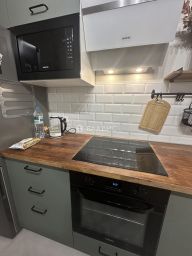 Общая площадь составляет 59,9 кв. м, из которых 28 кв. м — жилая площадь, а 22,1 кв. м — просторная кухня. Высота потолков — 2,66 м, что создаёт ощущение простора и свободы.