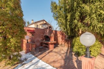 Отдельно от дома построен гараж на 4 авто и квартира для обслуживающего персонала, с постоянно проживающим сотрудником, хозблок. На участке: по переимеру липы, сакура, ели, туи, газон, изобилие многолетних цветов (розарий).