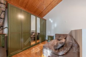 Дом общей площадью 360 кв.м. с функциональной планировкой: на первом этаже располагаются: кухня, гостиная, столовая, гостевой санузел, спальня, банный комплекс с бассейном с противотоком, солярий, сауна, душ. Теплая терраса с мягкой мебелью. На втором этаже: три спальни, кабинет, две гардеробные, два санузла, в цокольном этаже расположены: рабочая кухня со всей необходимой техникой.