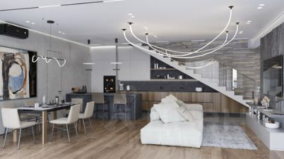 Жилой дом без внутренней отделки. В альбом фотографий добавлены 3d визуализации интерьера из дизайн-проекта