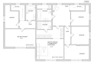 Планировка дома включает кухню-столовую и гостиную, 5 спален, 2 кабинета, 5 санузлов.