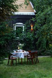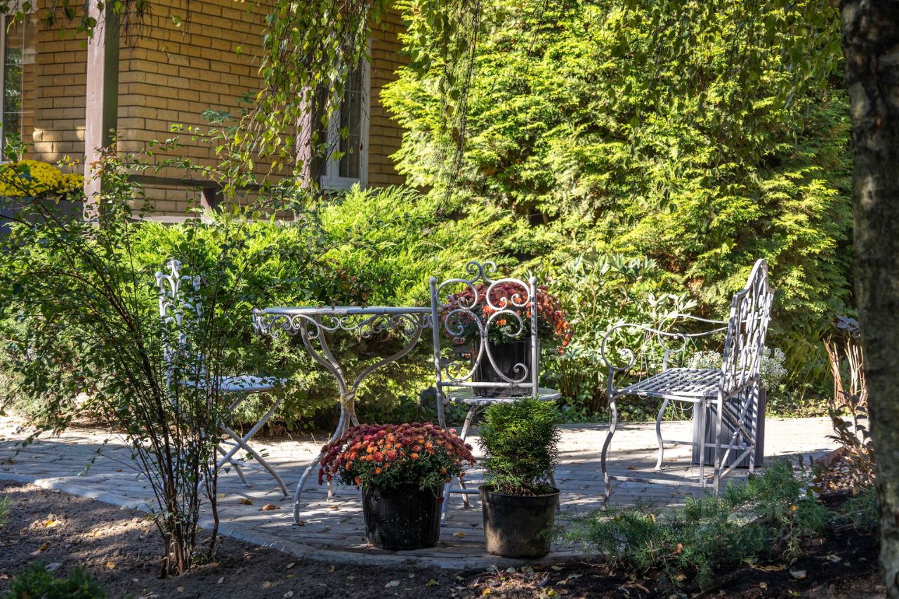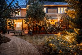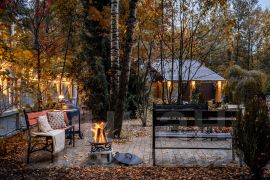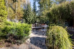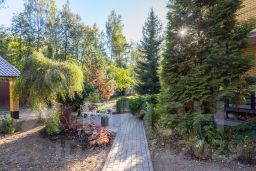 Участок сухой, солнечный, много лесных деревьев. Сделан ландшафтный дизайн и ландшафтное освещение. Растут яблони, есть теплица и место под кухонный огород. Размер участка позволяет построить еще один дом, баню или провести дополнительное благоустройство с учетом характера занятий и хобби семьи.